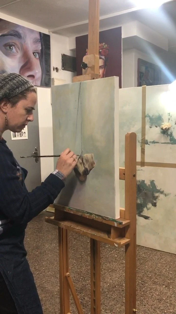 At age 35, she left Mea Shearim and the ultra-Orthodox community, relocating with her family to the United States, where she embarked on a journey of professional development, refining her painting techniques and methodologies. Upon returning to Israel, she settled down in Mazkeret Batya. She based her academic artistic education at the Avni institute in Tel-Aviv and studied art history at the Open University. Through lessons with the artist Gustavo Barr Valenzuela, she learned the traditional techniques and excelled. To this day, she continues to create with him as her guiding mentor.