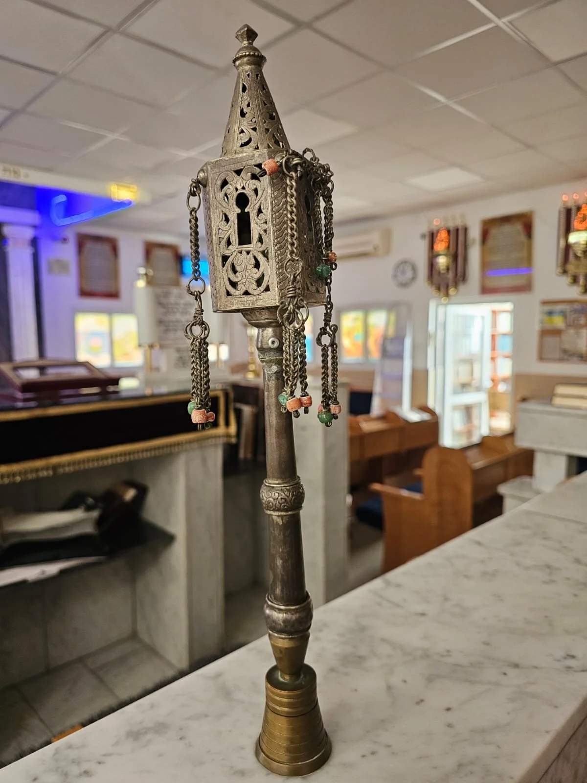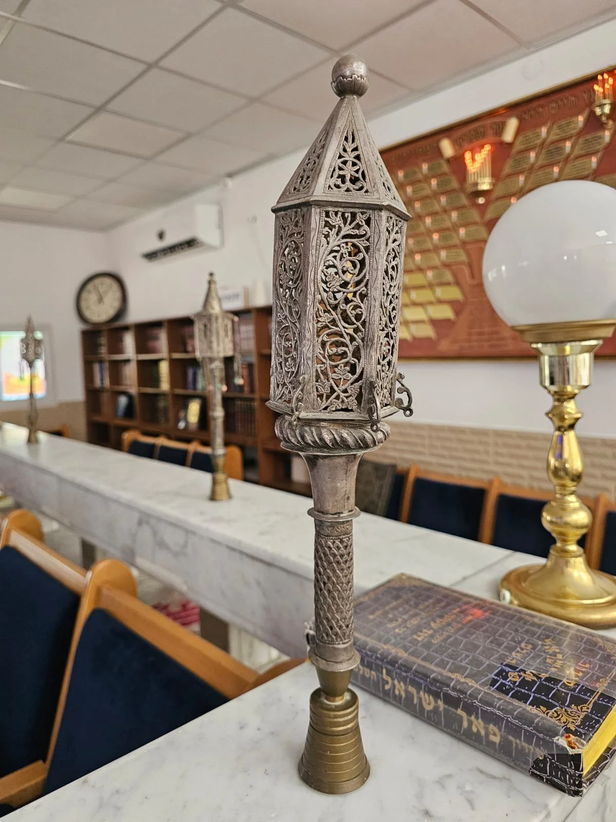 In this photo there is a lack of clarity about what happened in the synagogue, but for me it is a source of information about the lamps that hung from the ceiling.