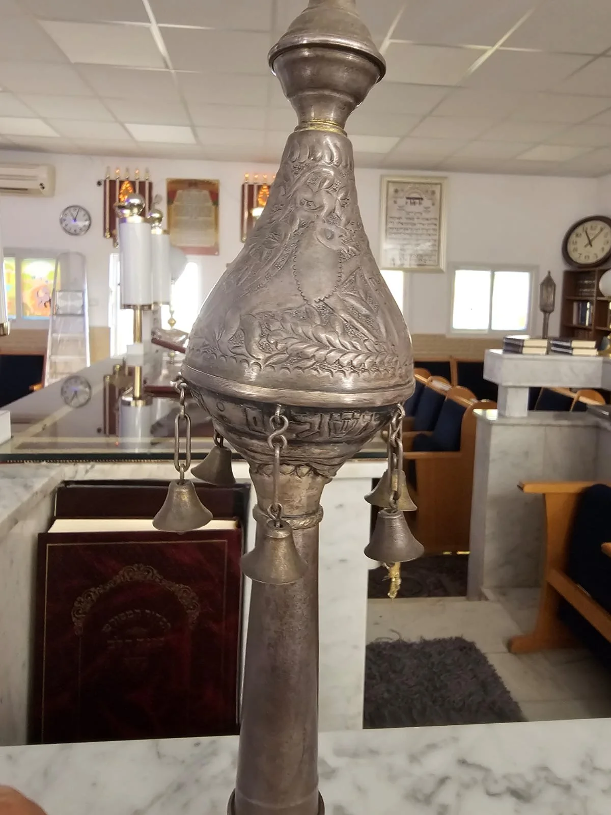 Photographs of the pomegranates found today in the synagogue of the Ohel Israel community in Dimona, Israel