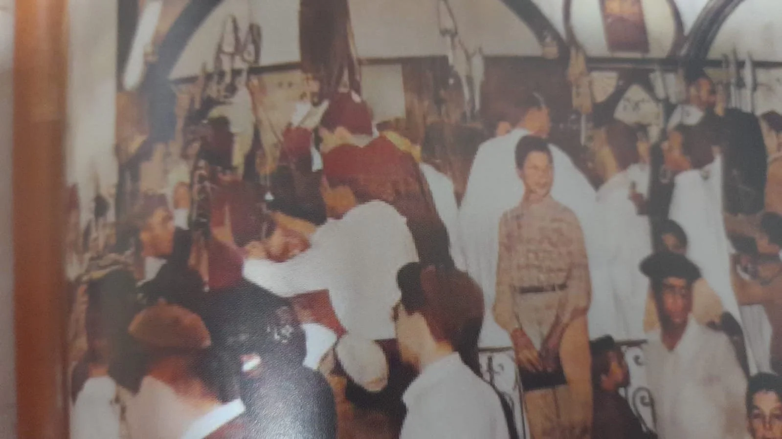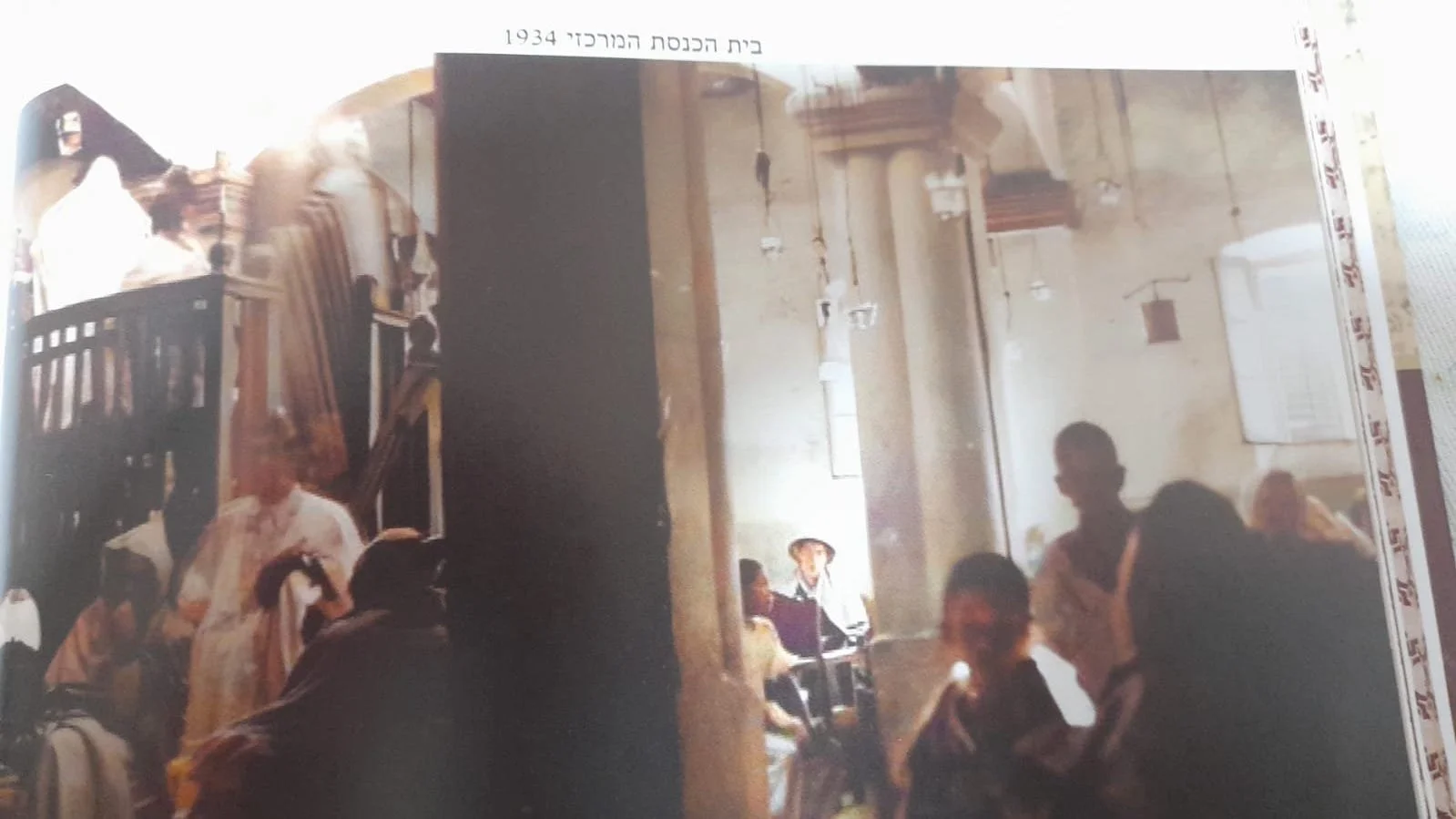 After we collected photographs taken at various events in the synagogue, I was able to put together the complete puzzle and understand what I was actually seeing in the blurry photograph. From a colored photo of the wooden benches I got information about the shades of the furniture. From another photo that looked like a family event, I had the opportunity to see the lamps hanging from the ceiling. Fortunately, there was also another picture from which I could understand the structure of the fence of the stage and the pomegranates that decorated it.